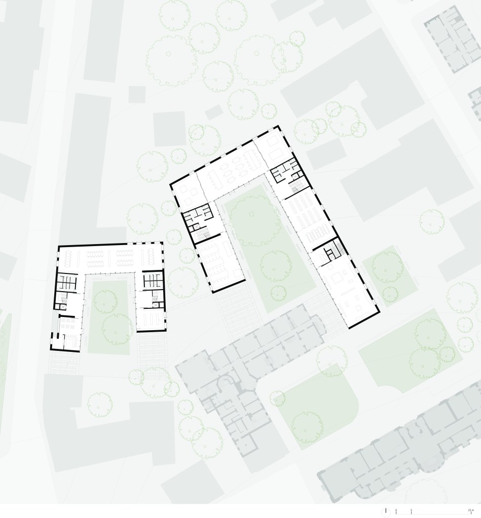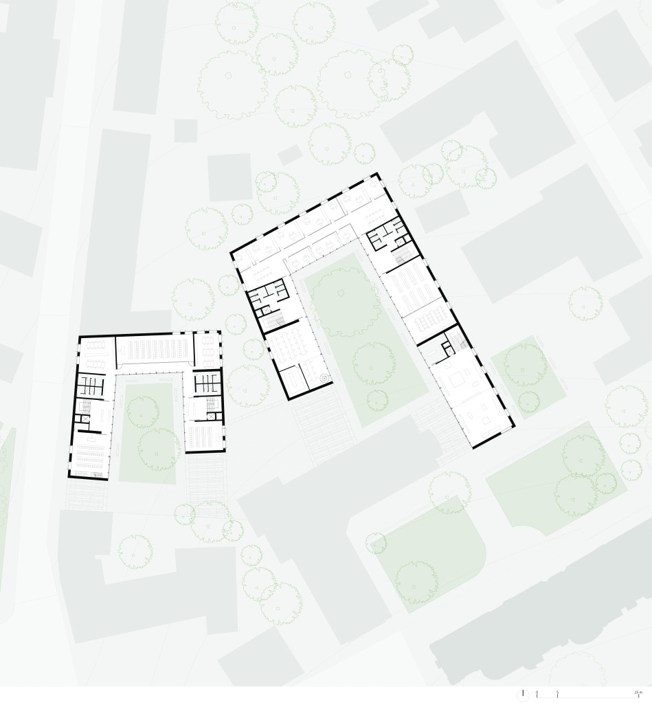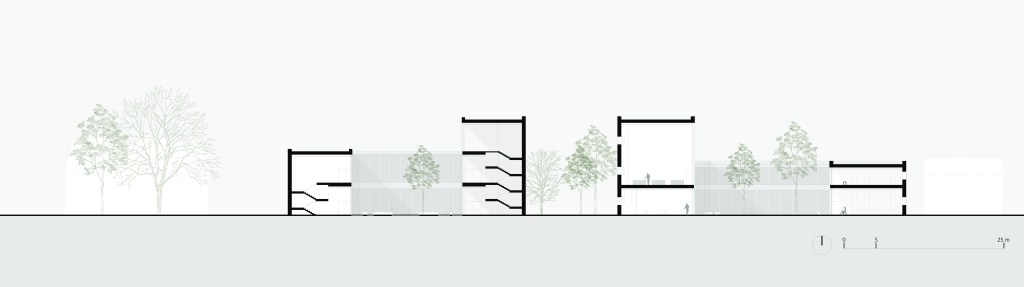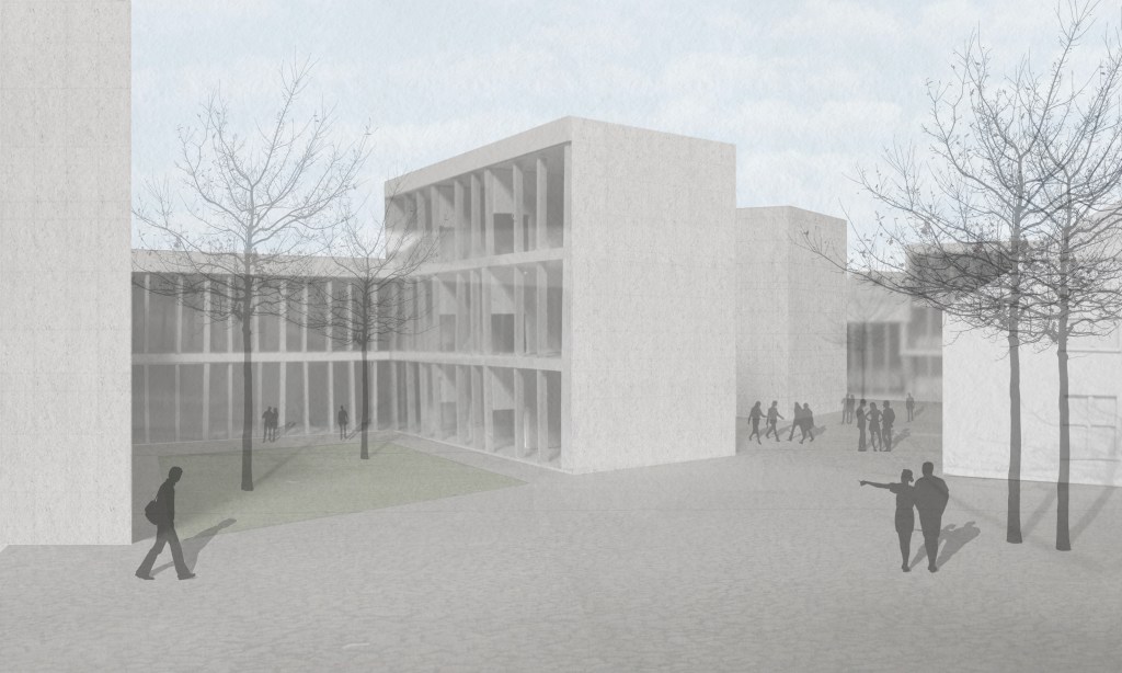 Tema d'anno del laboratorio del Prof. Arch. F.Izzo, sito nella cittadina tedesca scelta da Goethe come sede stabile della maturità, l'ampliamento del Campus universitario del Bauhaus è un progetto che si raffronta con i temi del costruire nel costruito, della rigenerazione urbana e del dialogo che la nuova architettura instaura con la spazialità e la materialità della città stratificata. L'idea nasce dalla volontà di continuare il parco cittadino all'interno del campus attraverso un sistema di corti che gradualmente permette di passare dalla città ai laboratori universitari. Il programma di ampliamento prevedeva una serie di spazi di co-working e laboratori che facevano da cornice ad un nuovo spazio espositivo. Il gioco dei volumi che si dilatano e restringono permette di generare corti dalle proporzioni differenti che attraverso una successione di pieni e vuoti introduce allo spazio privato del campus.