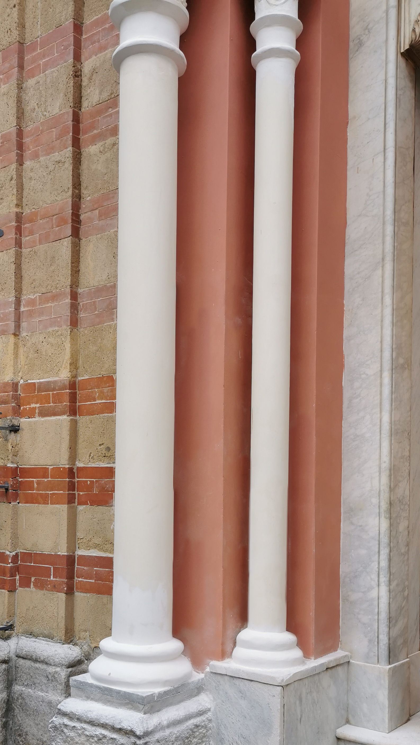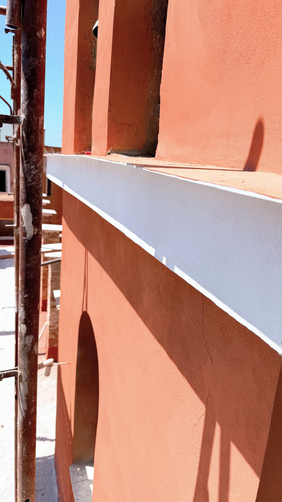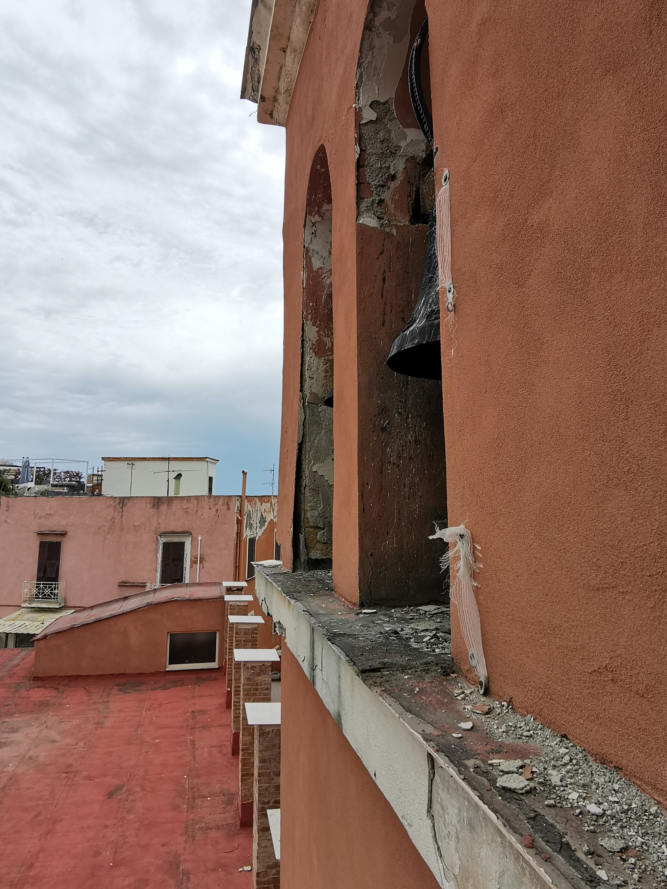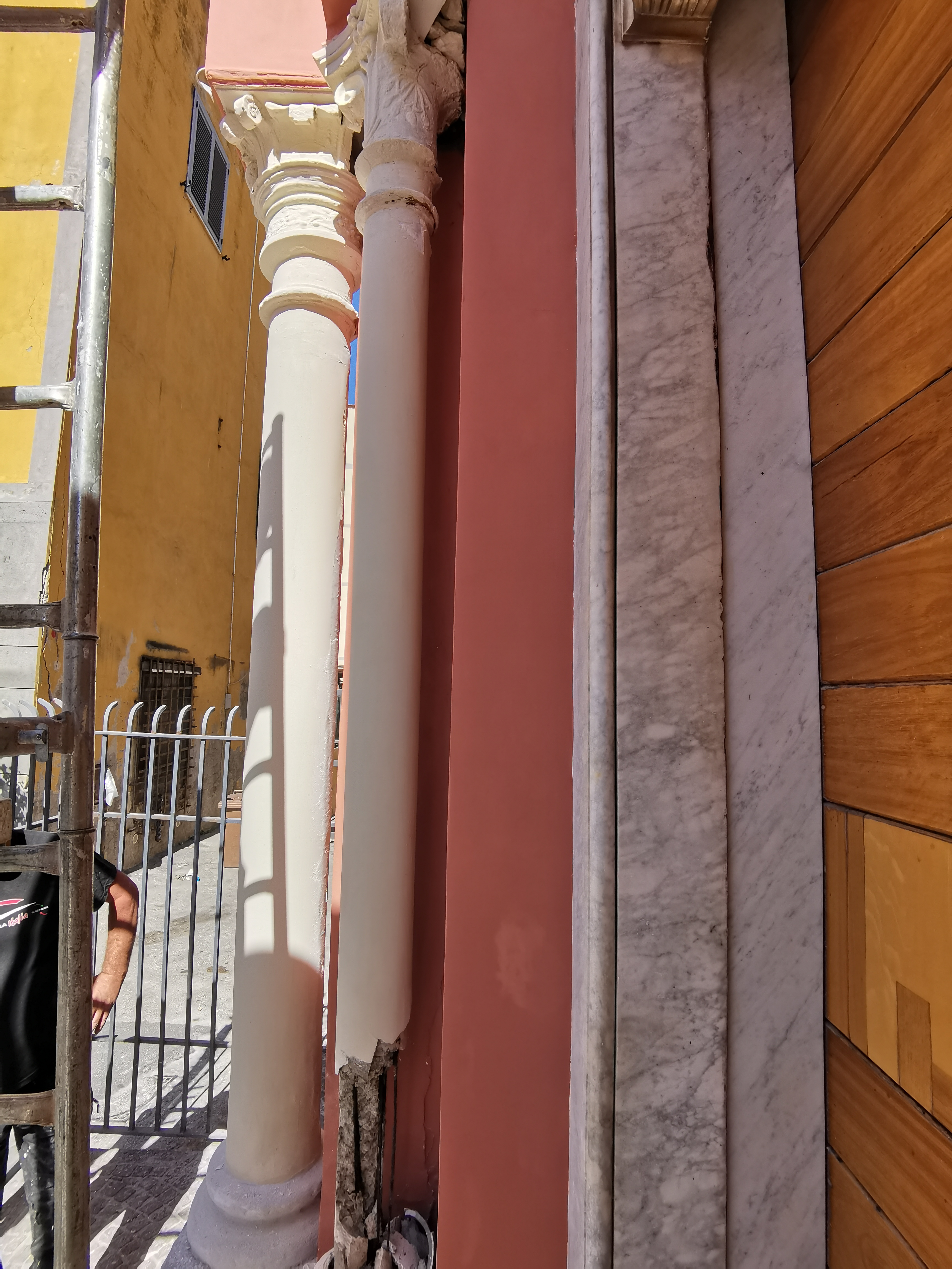 L’intervento nasce dalla necessità di restaurare il campanile, il prospetto di retro e il portale sul fronte principale, in stato avanzato di degrado, causato da precedenti operazioni di manutenzione erroneamente effettuate a base cementizia e dalla forte erosione della salsedine del mare a pochi passi. L’intervento è iniziato con un approfondito rilievo materico e geometrico, che ha permesso di analizzare degradi, stratigrafie e compatibilità dei supporti. Da queste indagini è scaturito un progetto conservativo basato sull’uso di materiali a base calcica, scelti per garantire traspirabilità, compatibilità chimico-fisica e rispetto delle tecniche tradizionali. Gli intonaci ammalorati sono stati rimossi e ricostruiti con cicli certificati a tre strati in calce idraulica naturale, assicurando continuità materica con l’edificio storico. Le superfici sono state poi regolarizzate con rasanti fibrorinforzati e rifinite con finiture a calce naturale a granulometria fine, restituendo uniformità e porosità adeguata. Le cornici e gli elementi decorativi sono stati puliti, consolidati con prodotti silossanici e reintegrati manualmente con stucchi calcici modellati sulla sagoma originaria. Parallelamente, la Direzione Lavori ha verificato costantemente l’esecuzione delle opere, coordinando varianti migliorative e controllando la corretta posa dei materiali. L’intero processo ha garantito un restauro coerente, durevole e rispettoso della materia antica, documentato da un report fotografico ante e post operam.
